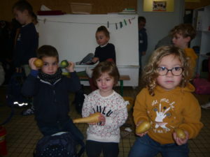 Chacun a la joie de tirer ses légumes du sac et de les présenter à ses camarades.