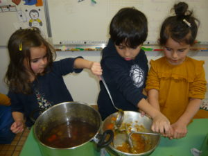 Au fil de nos lectures « Ah! les bonnes soupes« , « Une soupe 100% sorcière« …, les enfants ont eu envie de se mettre aux fourneaux comme les sorcières de nos histoires.